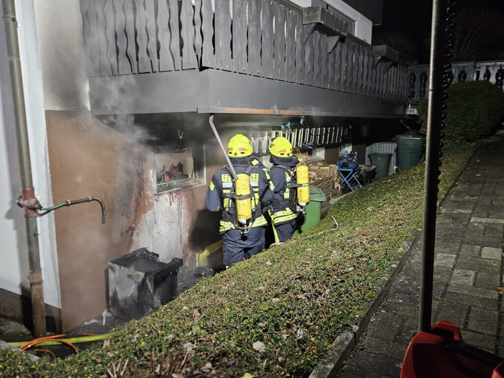 Ein Brand einer Mülltonne an der Außenfassade eines Wohnhauses in Finnentrop-Heggen hat am Mittwochabend einen Einsatz der Feuerwehr ausgelöst. Durch die starke Hitzeentwicklung platzte ein angrenzendes Kellerfenster, sodass Rauch in das Gebäude eindringen konnte. Die Feuerwehr konnte den Brand schnell unter Kontrolle bringen. Ein Bewohner atmete Rauch ein und wurde vom Rettungsdienst medizinisch versorgt. Während der Löscharbeiten verletzte sich zudem ein Feuerwehrmann und musste zur weiteren Behandlung in ein Krankenhaus gebracht werden. Im Einsatz waren die Einheiten Heggen und Lenhausen mit rund 35 Einsatzkräften. Zusätzlich unterstützten Kräfte des DRK-Ortsverbands Attendorn, der Rettungsdienst sowie die Polizei die Maßnahmen vor Ort.