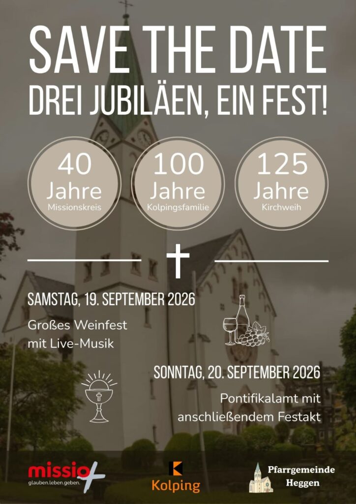 Höhepunkt der drei Jubiläen werden dann die Festllichkeiten am 19. und 20. September 2026 sein, wo wir auch unseren Erzbischof Udo Markus Bentz erwarten.