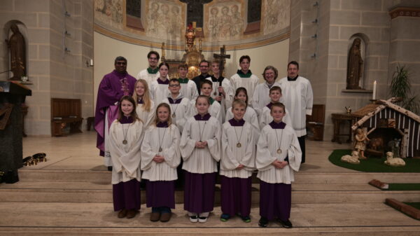 Aufgenommen wurden (erste Reihe, v.l.n.r.) Lilly Hohmeister, Marie Rüenauver, Maria Dommes, Felix Schmitz und David Ohm (es fehlt Lia Eckel). Sie werden ab jetzt durch ihren Dienst die Gottesdienste in Heggen bereichern und sind damit eine starke Unterstützung für unsere Gemeinde. Die Aufnahme erfolgte im Rahmen der Vorabendmesse zum 2. Adventssonntag, gefeiert von Pater John OCarm.