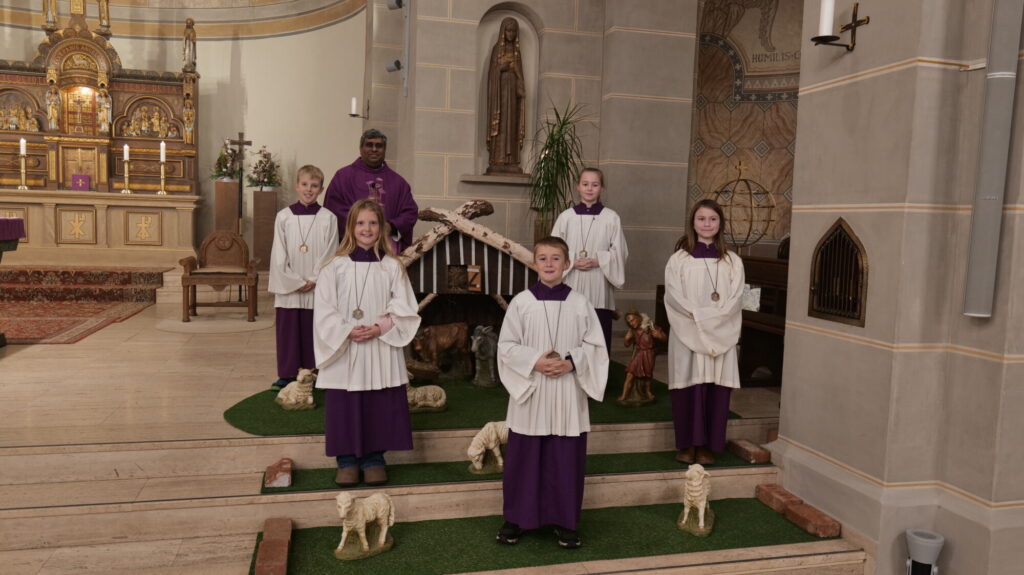 Aufgenommen wurden (erste Reihe, v.l.n.r.) Lilly Hohmeister, Marie Rüenauver, Maria Dommes, Felix Schmitz und David Ohm (es fehlt Lia Eckel). Sie werden ab jetzt durch ihren Dienst die Gottesdienste in Heggen bereichern und sind damit eine starke Unterstützung für unsere Gemeinde. Die Aufnahme erfolgte im Rahmen der Vorabendmesse zum 2. Adventssonntag, gefeiert von Pater John OCarm.